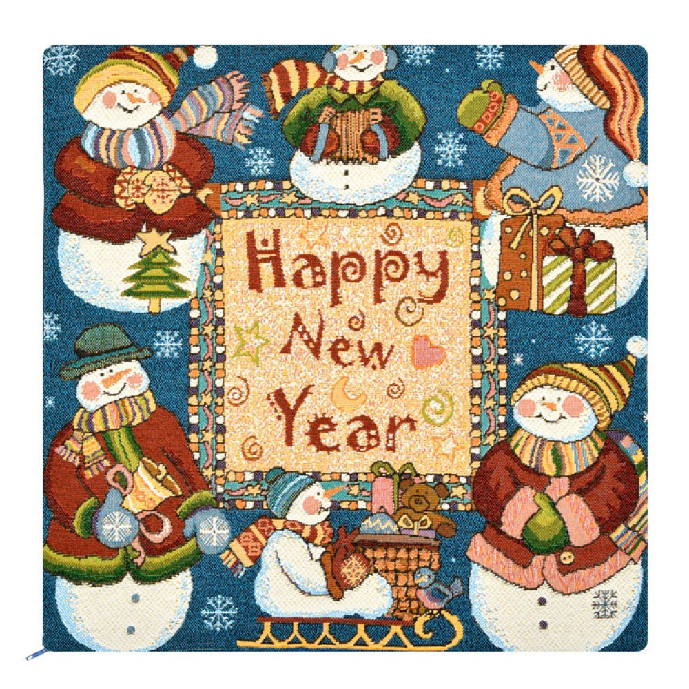 Декоративная гобеленовая наволочка "Снеговики" на молнии. Размер 45х45 см.