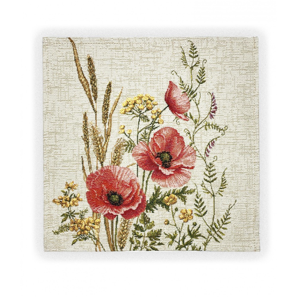 Гобеленовая Наволочка "Разноцветье Маки и Пижма БТ " (32х32)