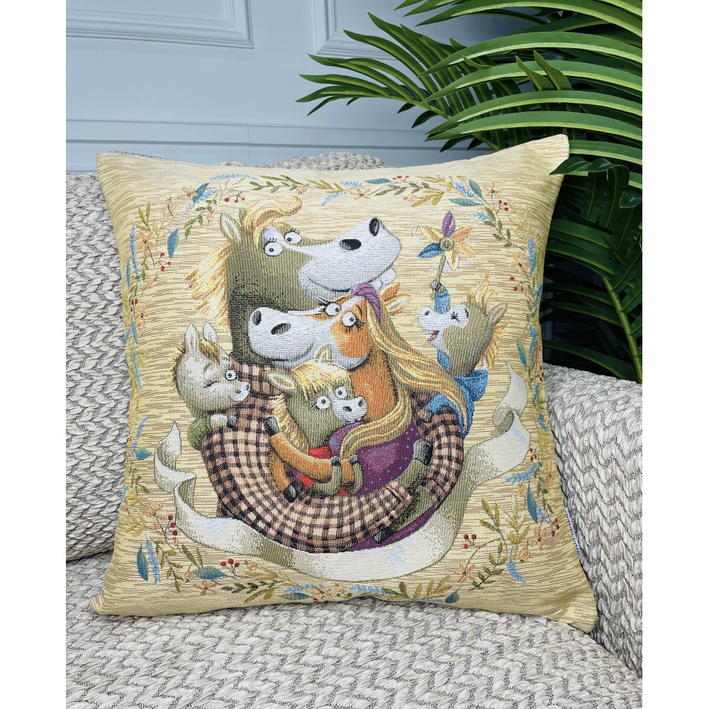 Гобеленовая наволочка "Счастливая семейка. Лошадки" (45х45)