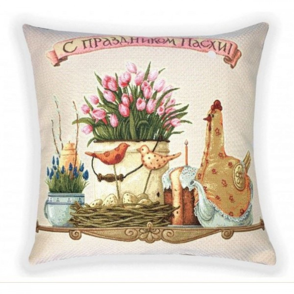Гобеленовая наволочка "С праздником Пасхи.Тюльпаны роз" (45х45)