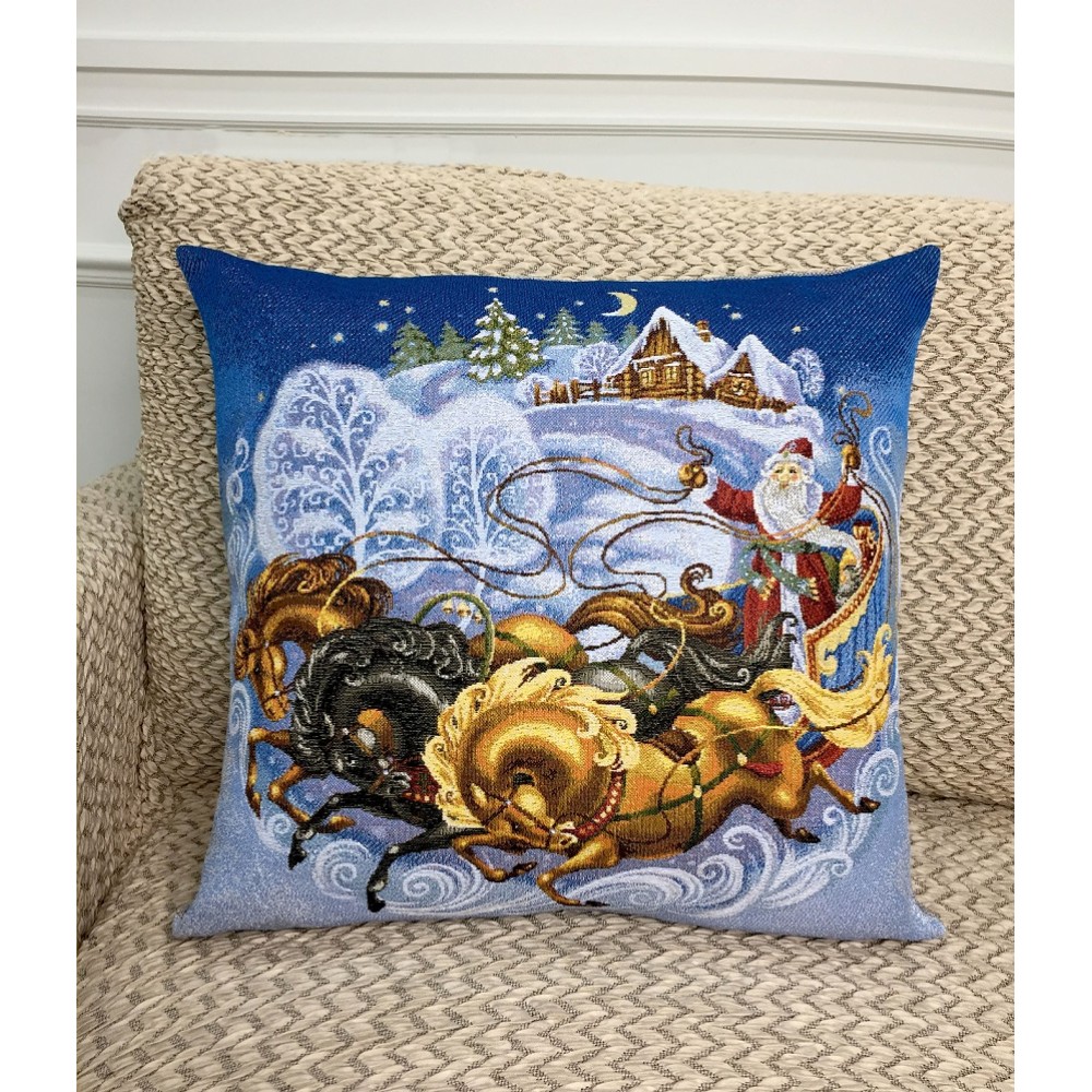 Гобеленовая Наволочка "Дед Мороз на тройке" (45х45)