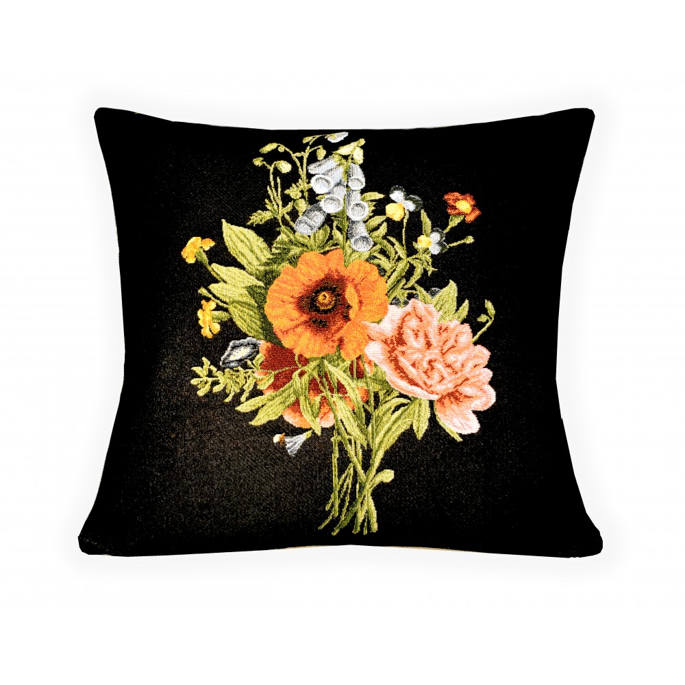 Гобеленовая Наволочка "Дачный букет Мак тёмный" (45х45)