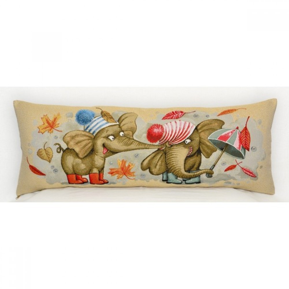 Гобеленовая Наволочка "Дружба Слоники в шапочках" (32х85)