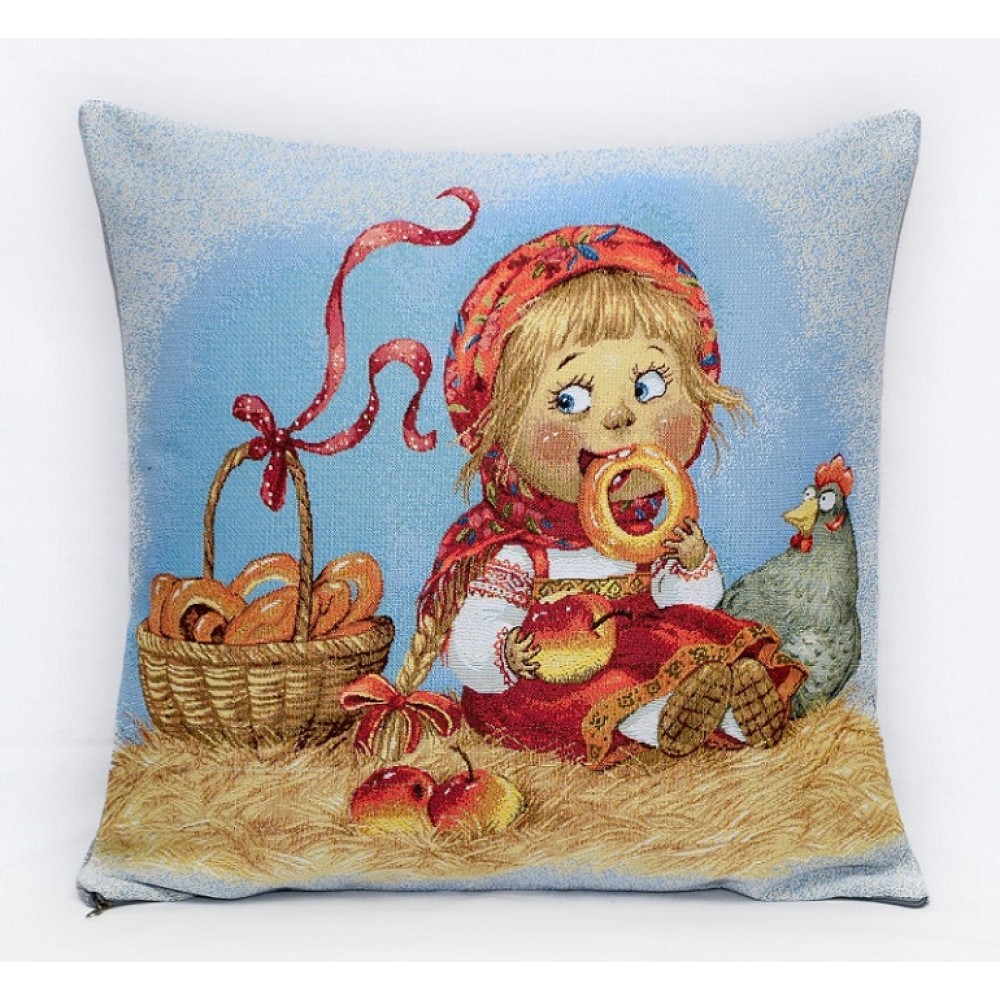 Гобеленовая Наволочка "Девочка с баранками" (45х45)