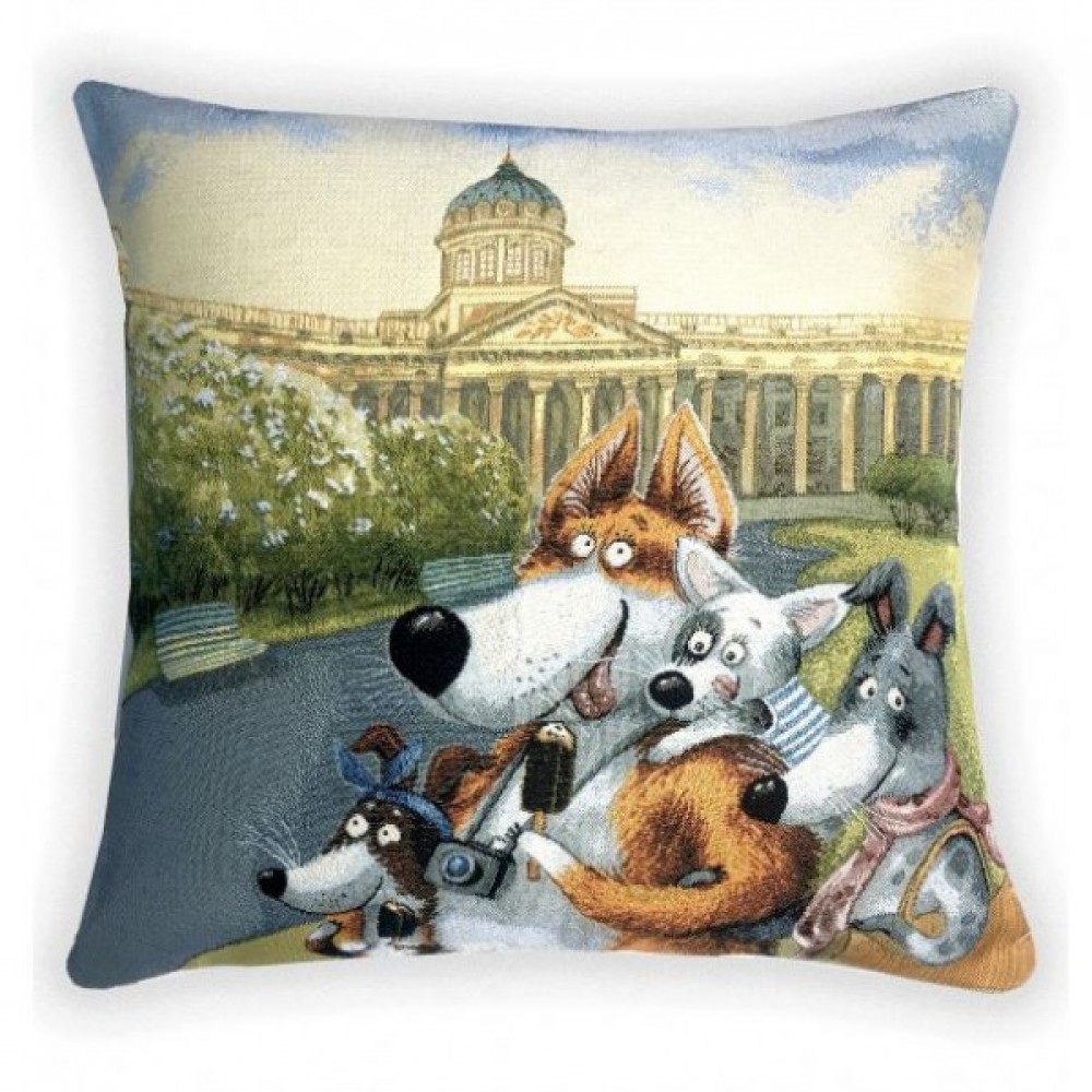 Гобеленовая наволочка "Путешествие в Санкт-Петербург.Семья" (45х45)