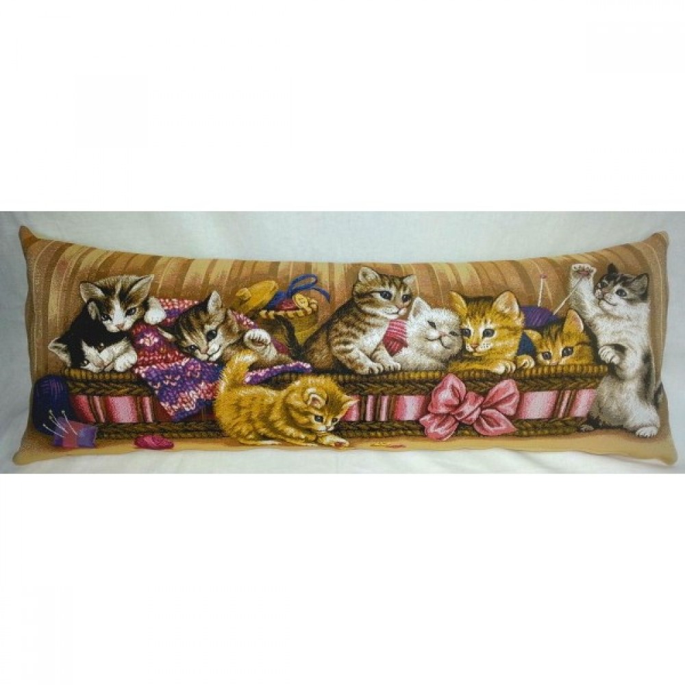 Гобеленовая Наволочка "Игривые котята в корзине" (32х85)