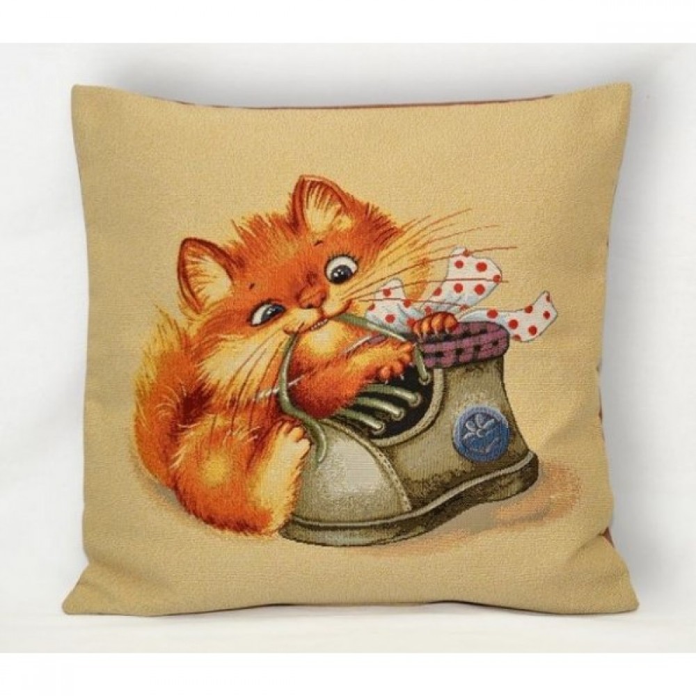 Гобеленовая Наволочка "Котёнок со шнурком" (45х45)