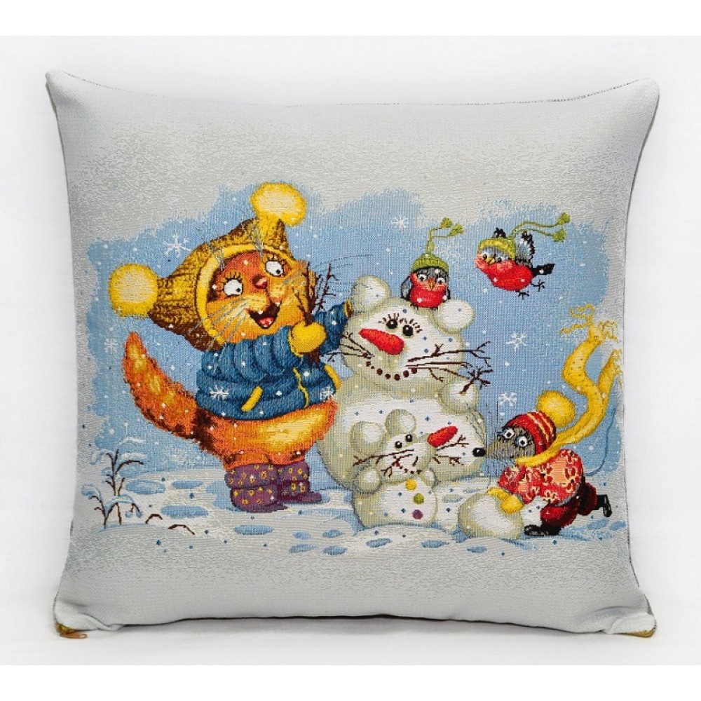 Гобеленовая Наволочка "Кот Снеговик" (45х45)