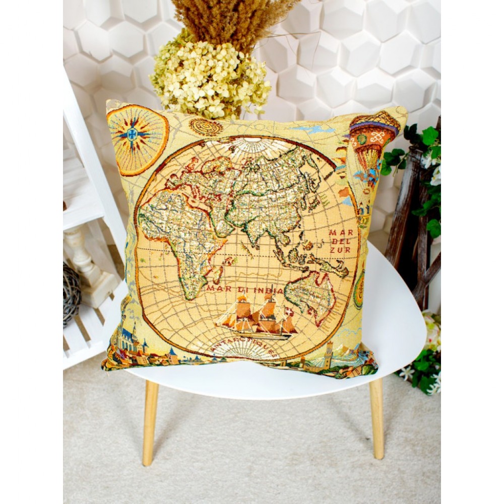 Гобеленовая наволочка "Карта Мира Восток" (50х50)