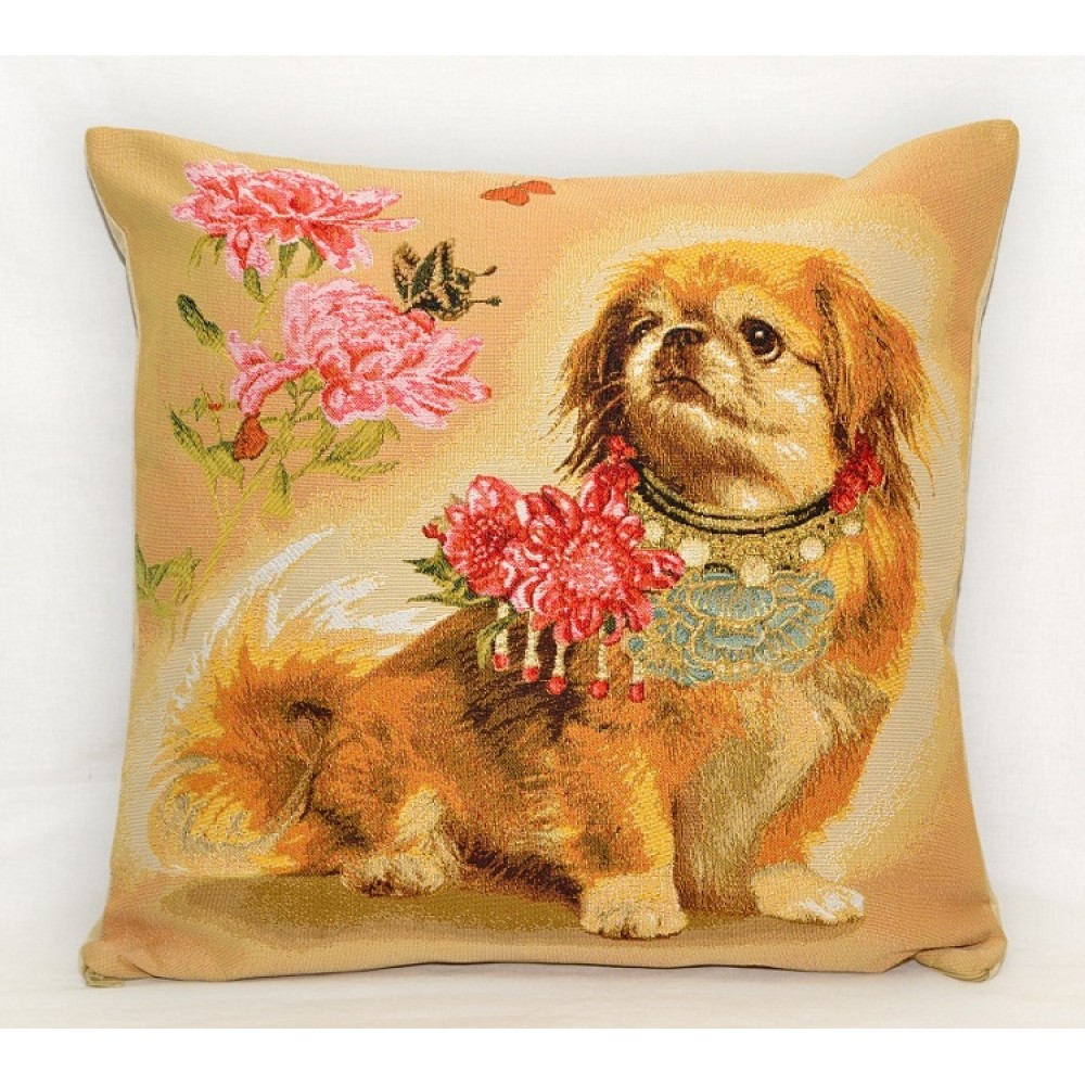 Гобеленовая Наволочка "ГС Пекинес в цветах" (45х45)