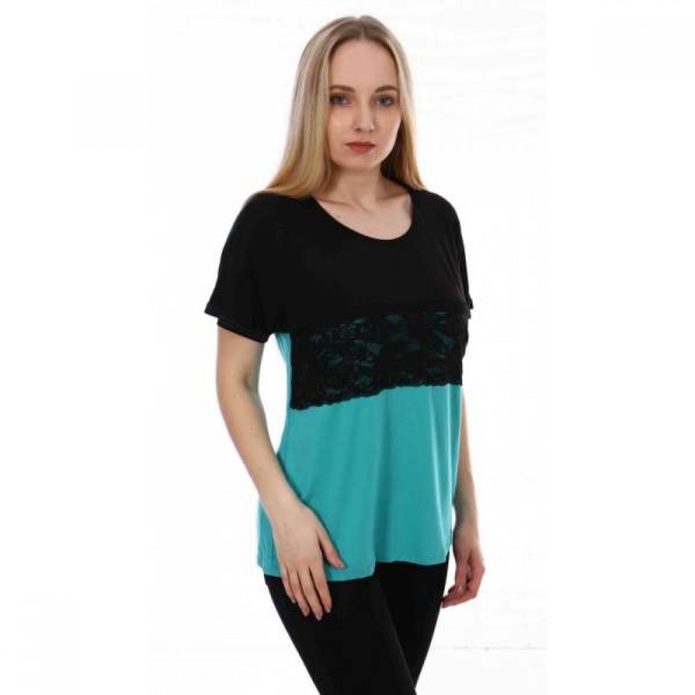 Цвет: в ассортименте Блуза свободного силуэта, пройма рукава приспущена, горловина круглая. На полочке изделия выполнена вставка из ажурной ткани.