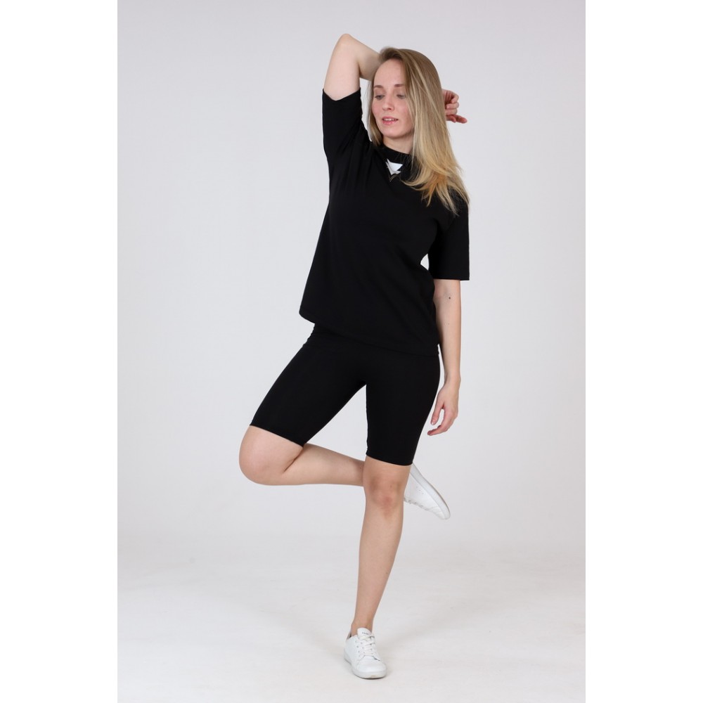Описание: Костюм состоит из футболки в стиле оверсайз и бридж(велосипедок). Состав: 94%хлопок 6%лайкра.Цвет: черный