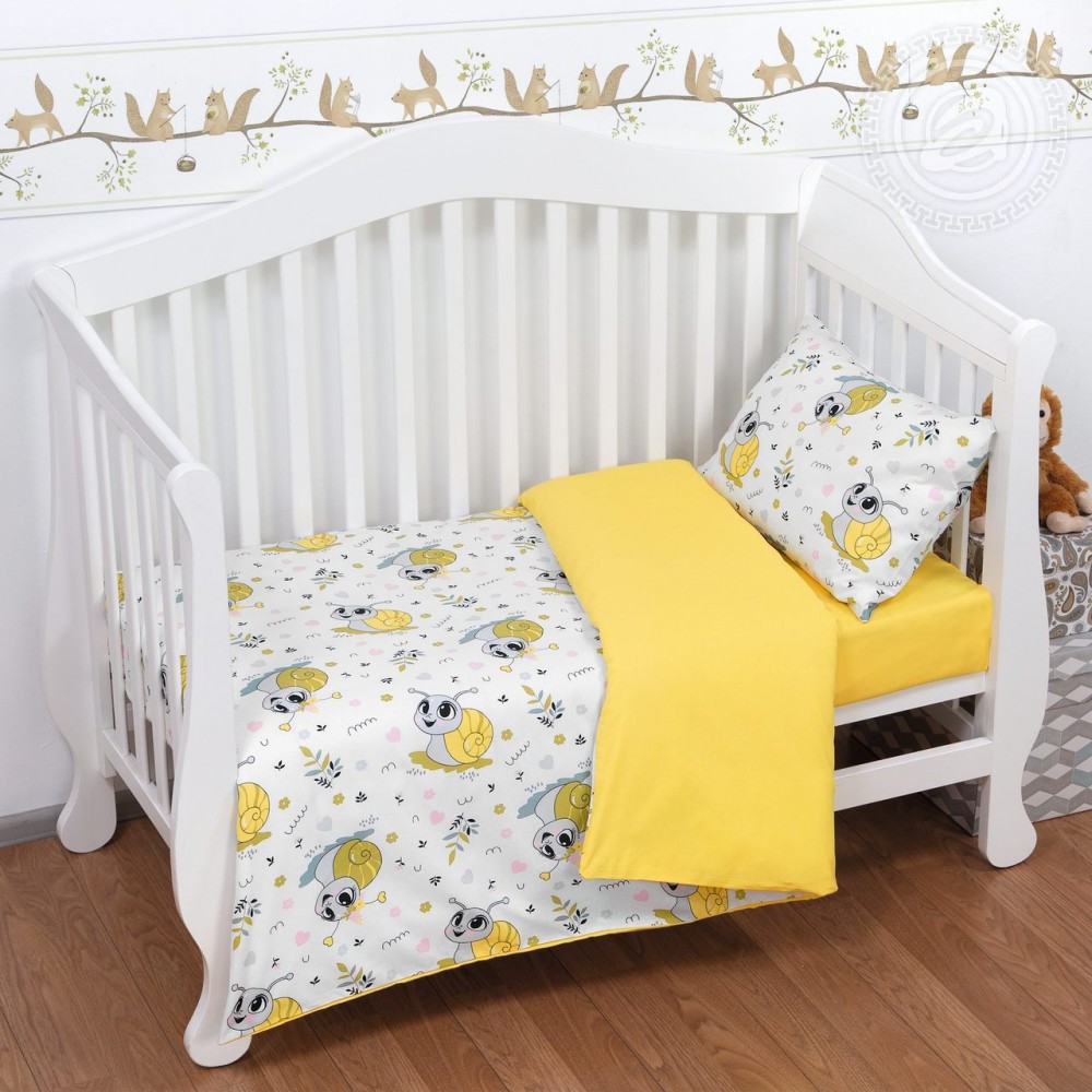 «Клёпа» - постельное белье из 100% хлопка для самых маленьких. Оно выполнено из экологичной и гипоаллергенной ткани поплин в теплой цветовой палитре. На ясельном комплекте милые улитки с румяными щечками среди луговых трав и розовых сердечек.