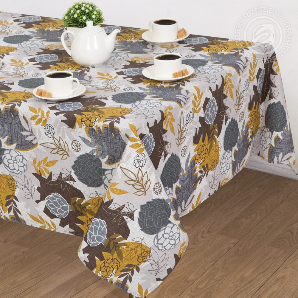Теплая палитра красок, растительные мотивы в виде артишоков и листьев образуют интересную и элегантную композицию, которая выглядит ярко и необычно.