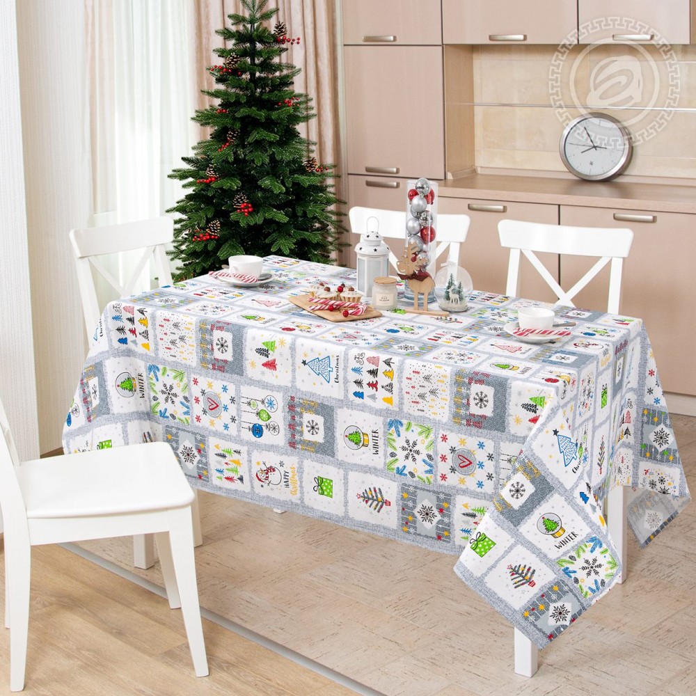 С чем ассоциируется Новый год? С елью, подарками и праздничным столом, за которым собирается вся семья. А украсят его не только вкусные блюда, но и новогодняя скатерть из рогожки, - яркая и атмосферная. Снежинки, игрушки, ёлки и снеговики, - все сюрпризы праздника поместились на этом изделии. Тематический дизайн несет ощущение радости и волшебства.