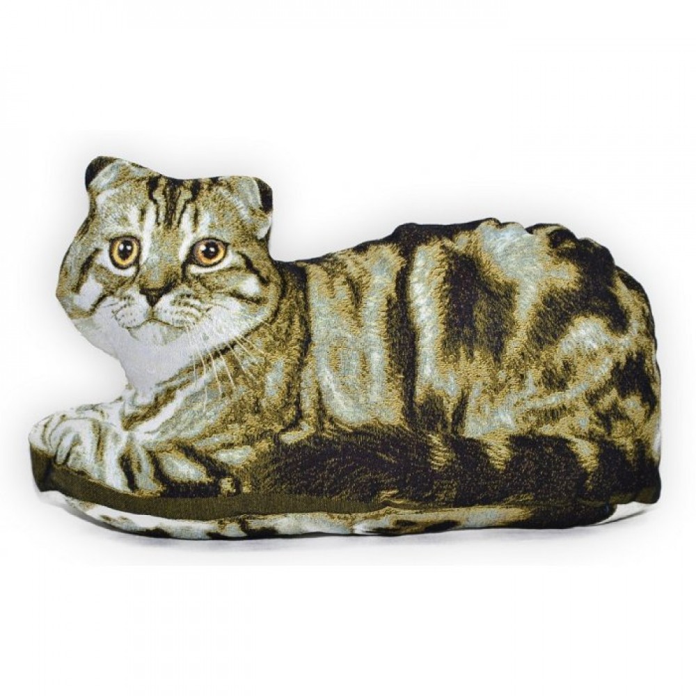Гобеленовая подушка-игрушка из шенилла "Скоттиш фолд" (35х55).