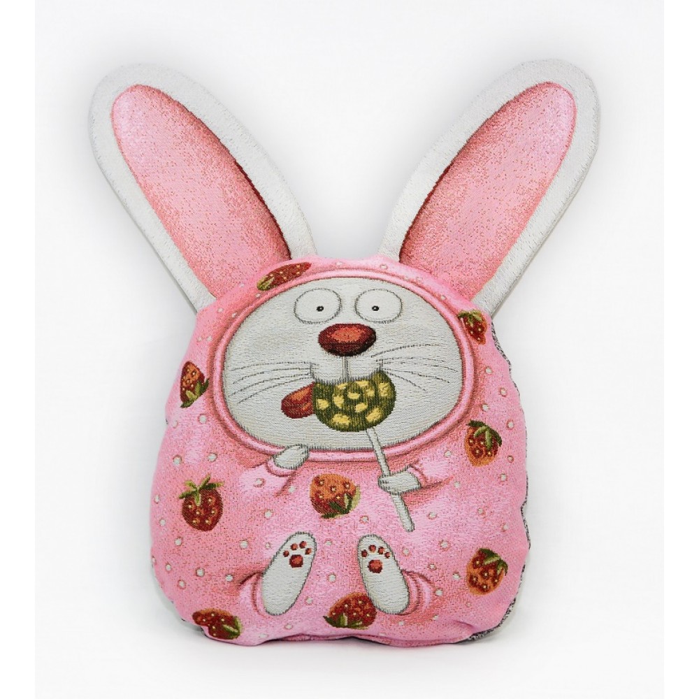 Гобеленовая подушка-игрушка из гобелена "Розовый заяц" (30х35).