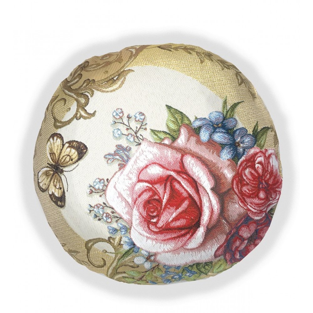 Гобеленовая подушка-игрушка из гобелена "Вальс цветов бабочка" (диаметр 46см).