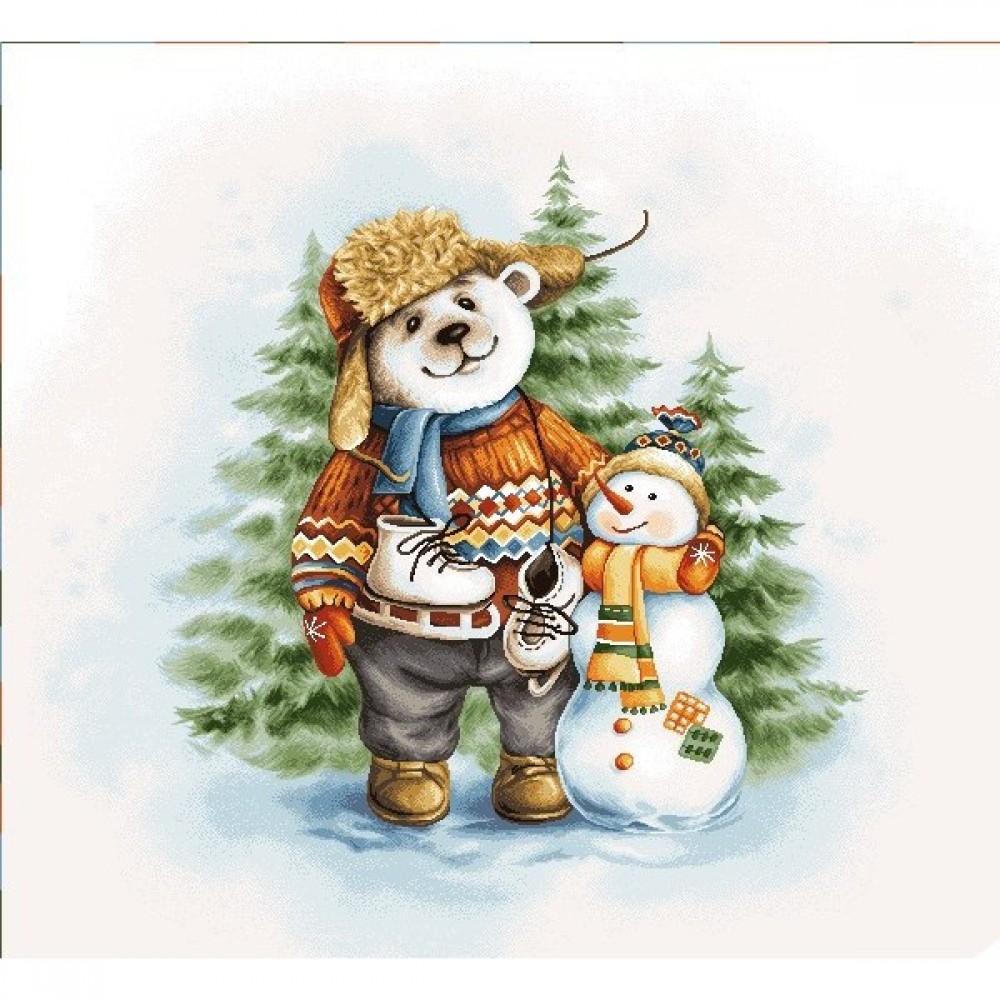 Гобеленовая Наволочка "Мишка со снеговиком" (45х45)