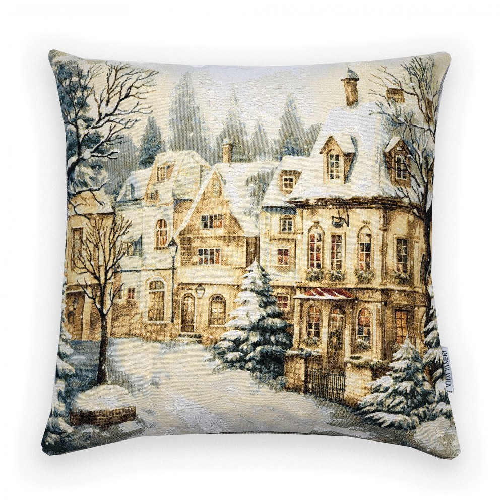 Гобеленовая наволочка "Заснеженный город беж" (45х45)