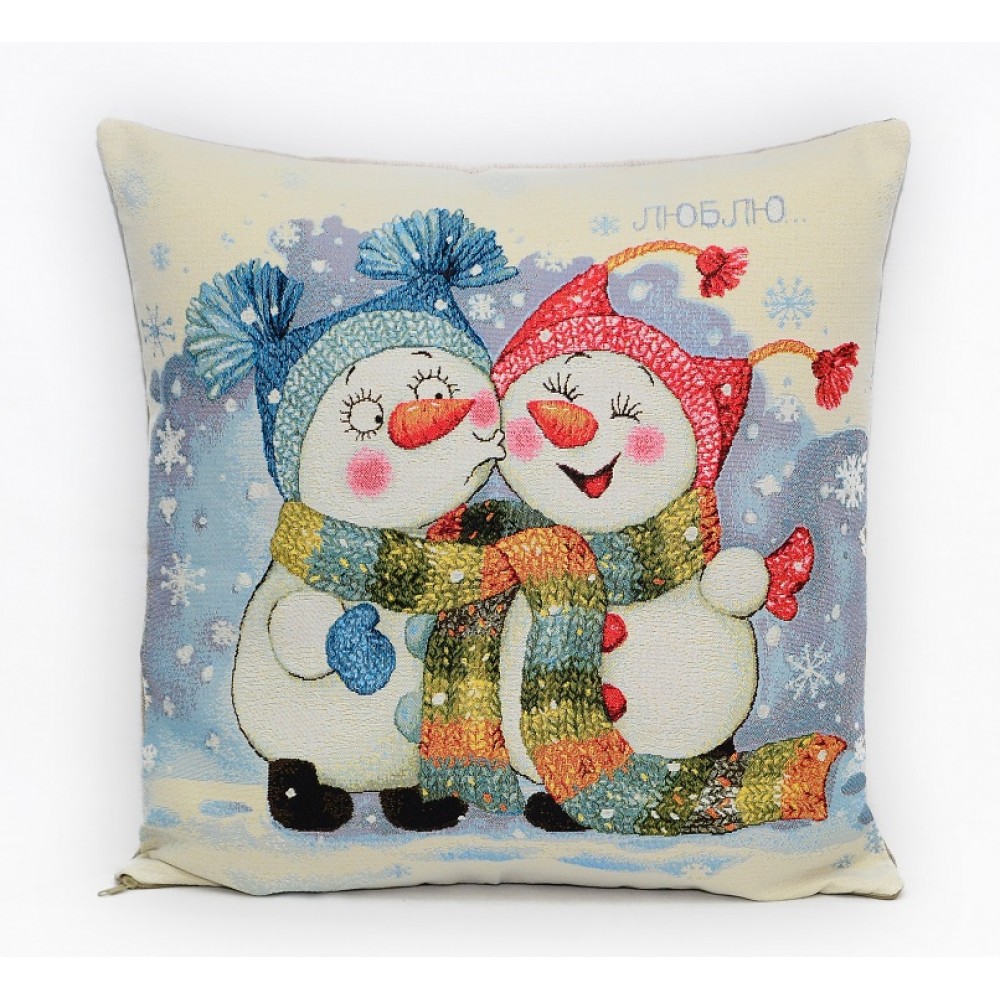 Гобеленовая Наволочка "Снеговички первый поцелуй" (45х45)