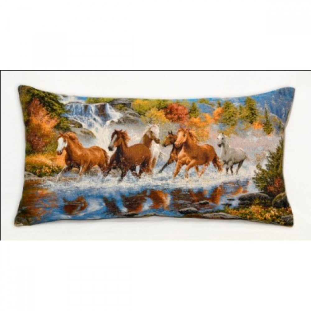 Гобеленовая Наволочка "Лошади у водопада" (35х65)
