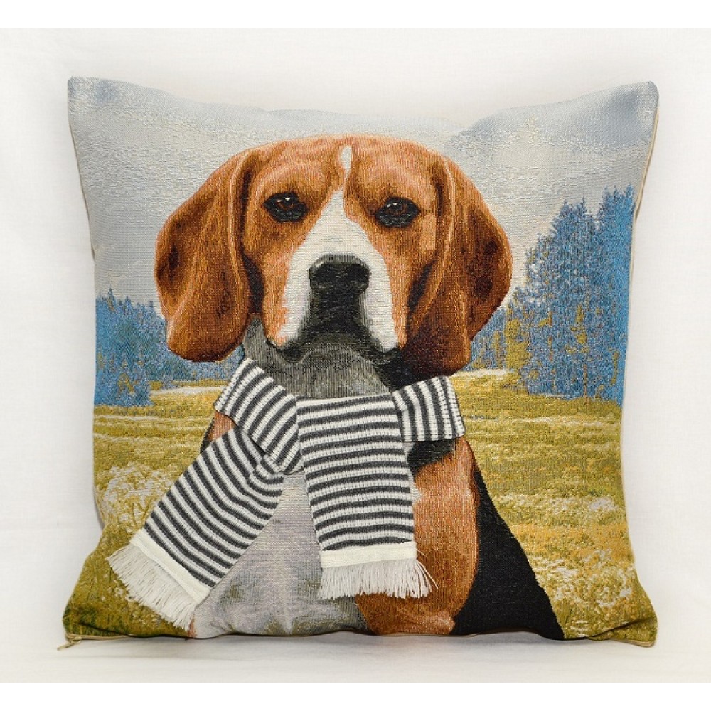 Гобеленовая Наволочка "Бигль в шарфике" (45х45)
