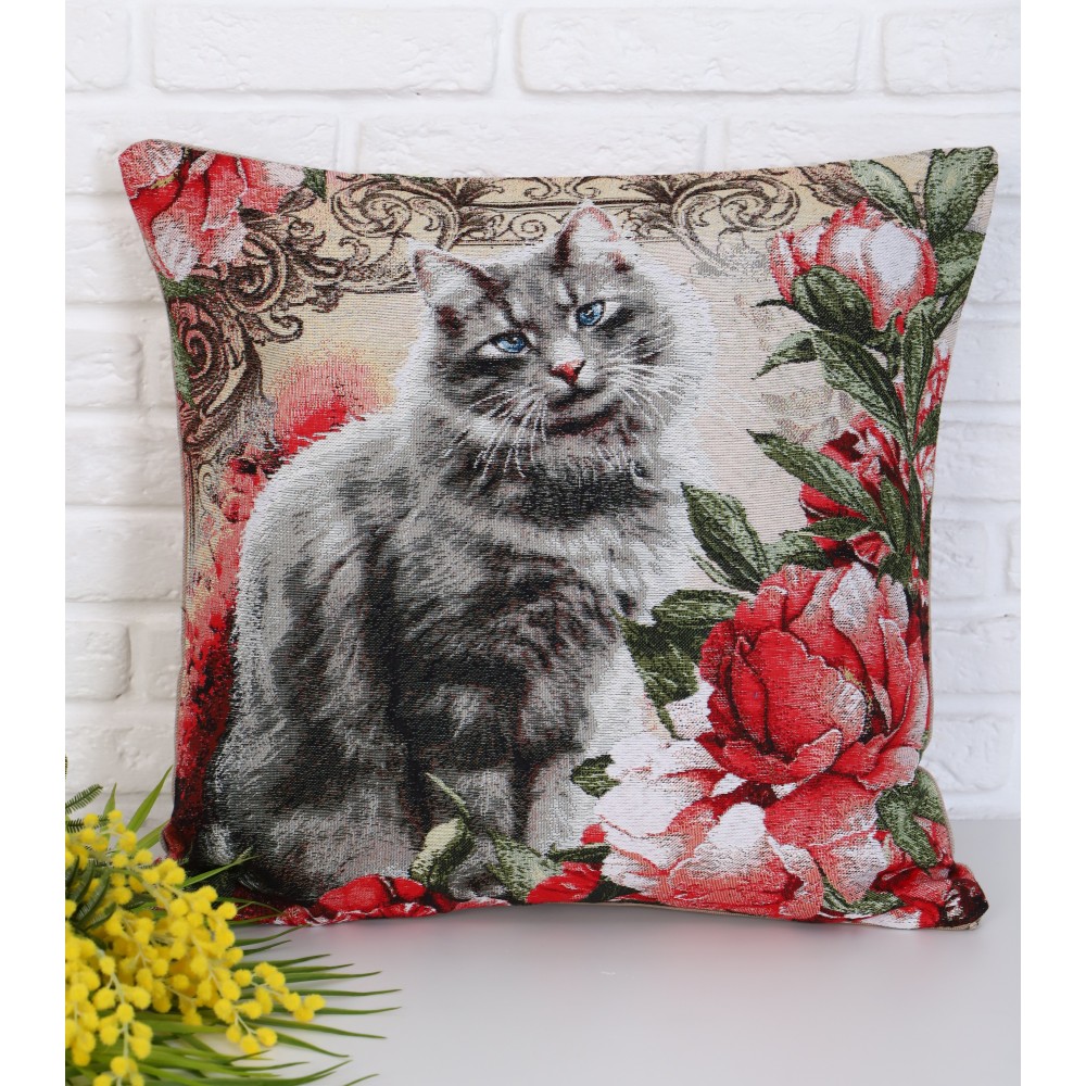 Гобеленовая наволочка "Кот в розах" (50х50)