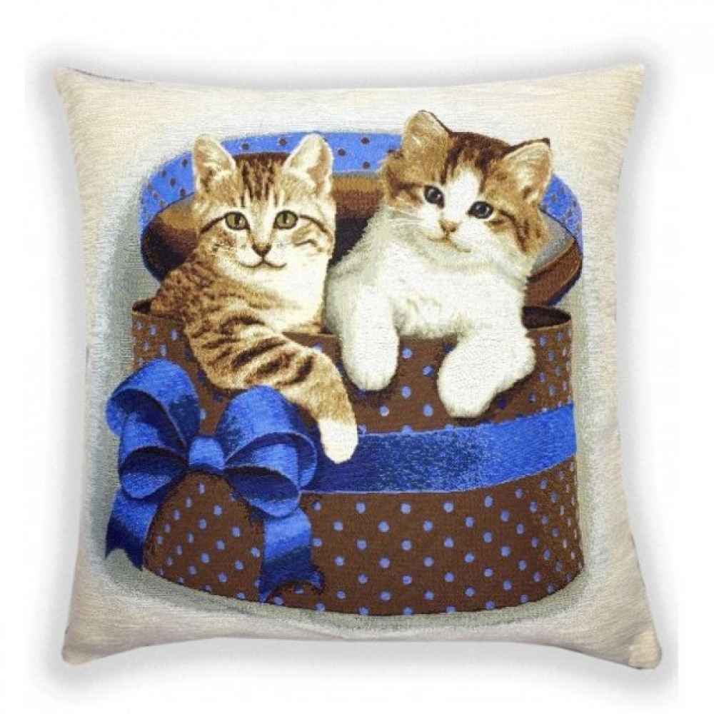 Гобеленовая наволочка "Котята в коробке горошек" (45х45)