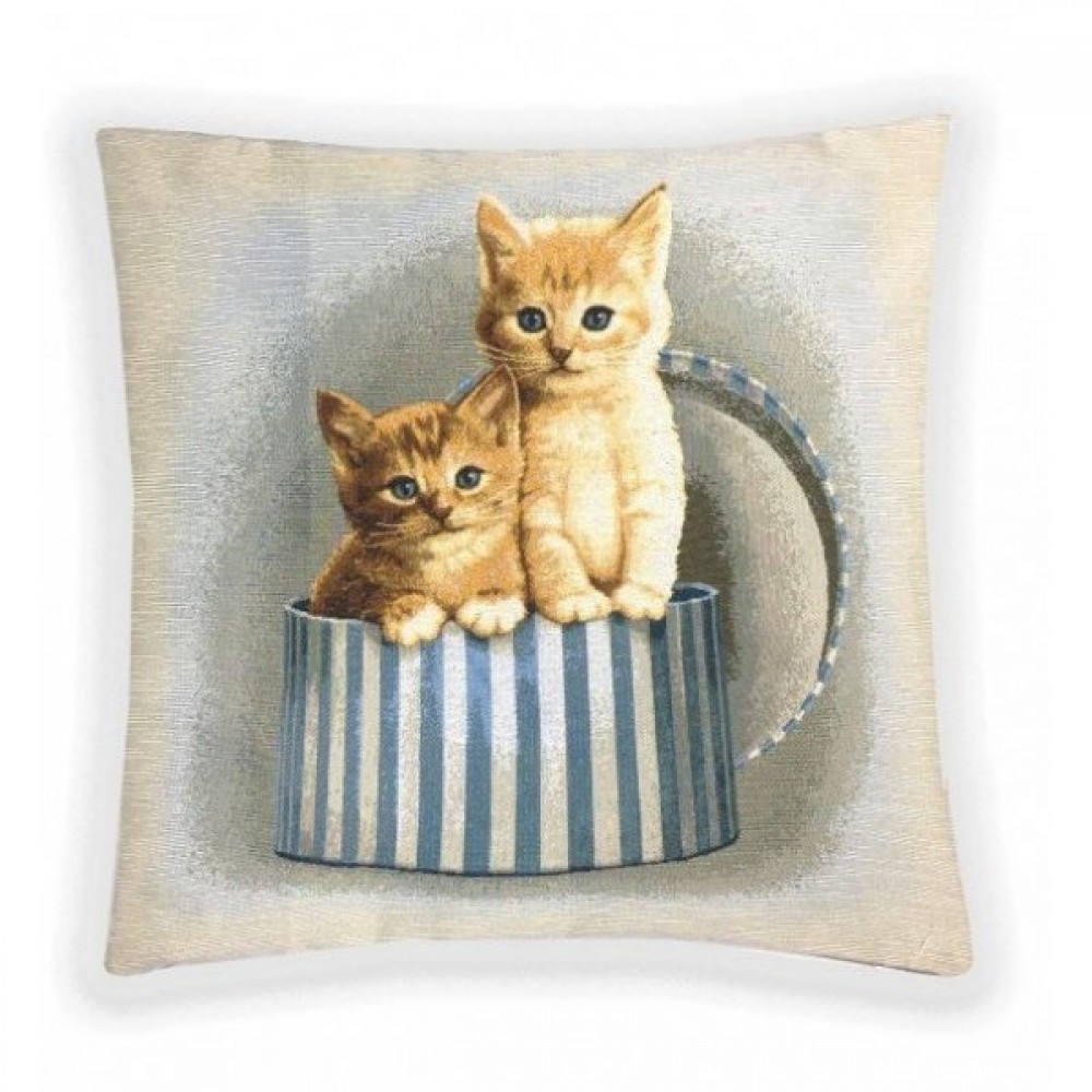Гобеленовая наволочка "Котята в коробке полоска" (45х45)