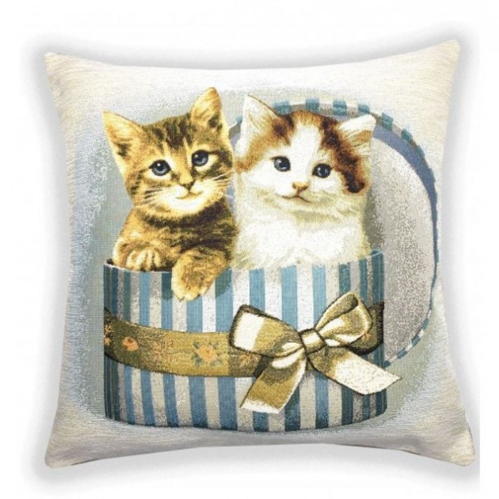 Гобеленовая наволочка "Котята в коробке бант полоска" (45х45)