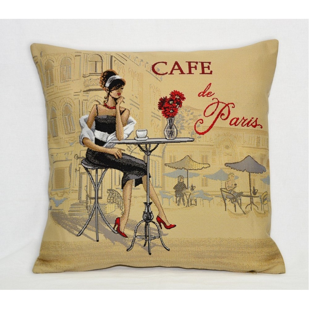 Гобеленовая Наволочка "Кафе Париж брюнетка" (45х45)