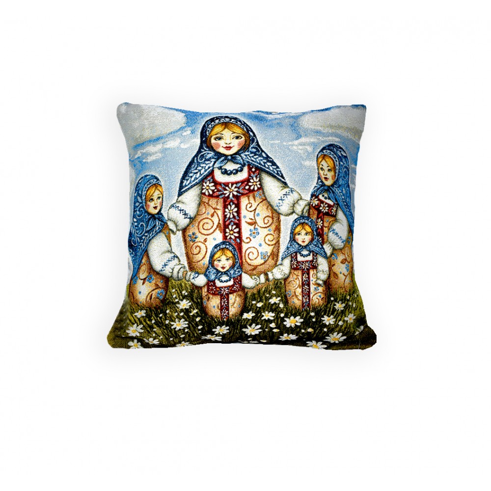 Гобеленовая Наволочка "Матрёшки хоровод" (45х45)