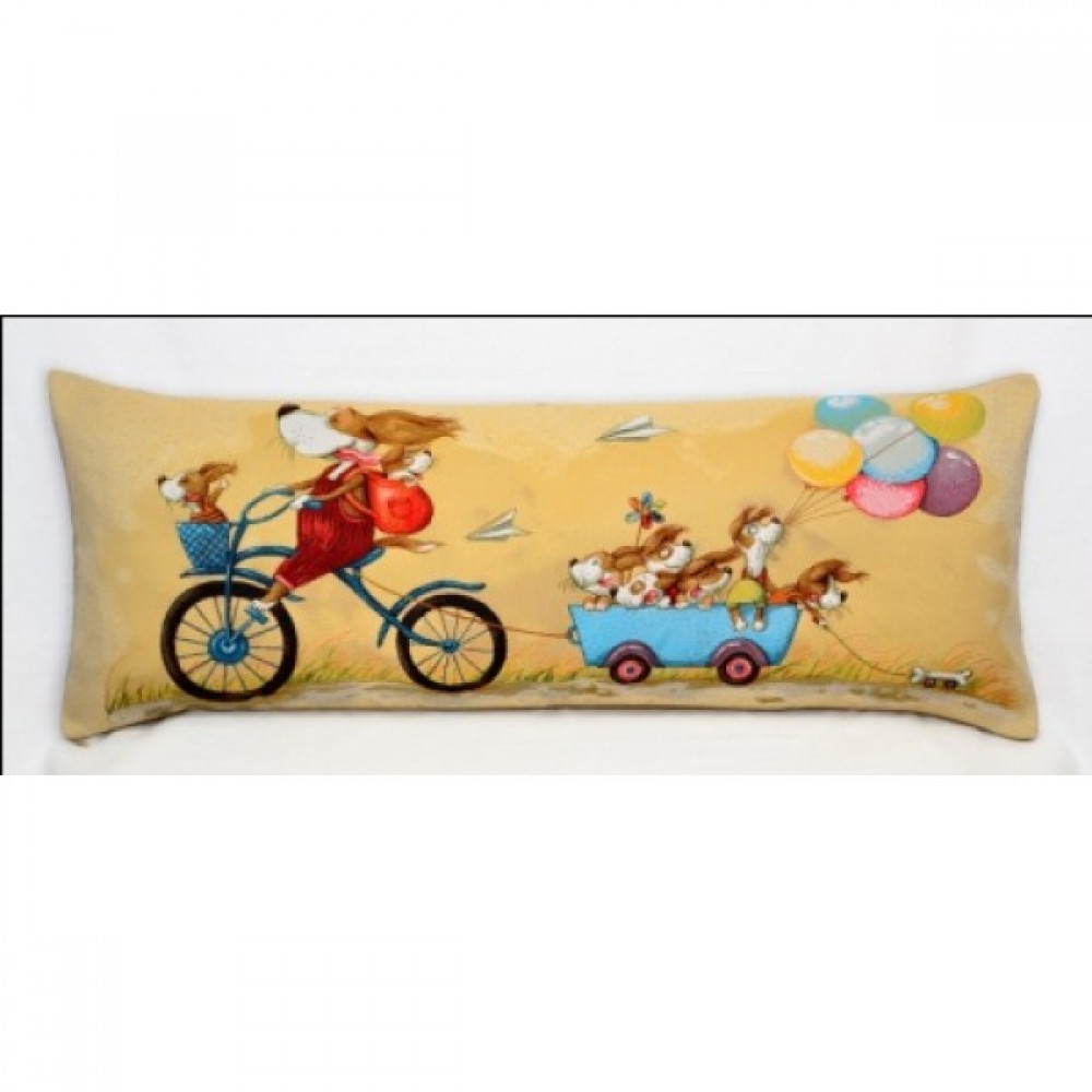 Гобеленовая Наволочка "Велопрогулка Собачки" (32х85)