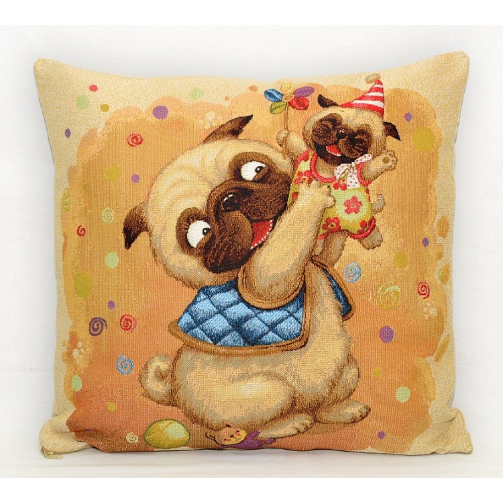 Гобеленовая Наволочка "ГС Мопс День рождения" (45х45)