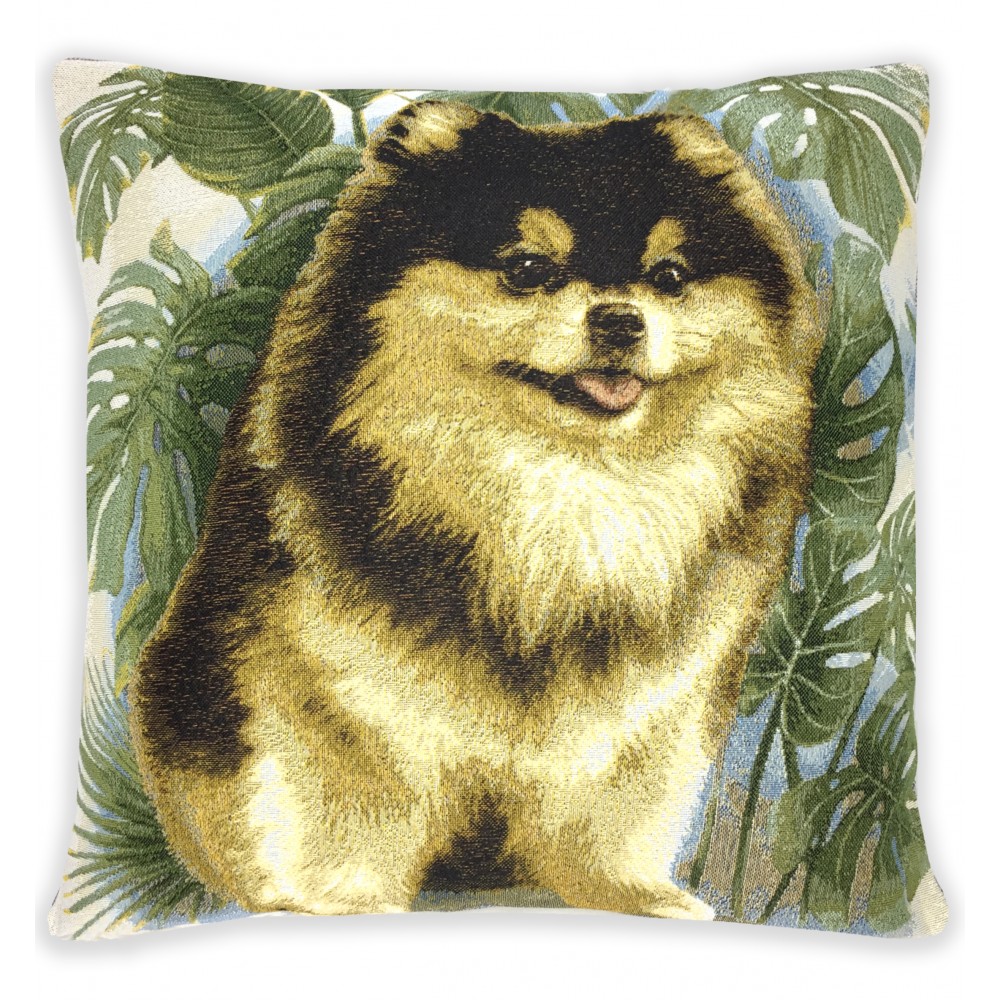 Гобеленовая Наволочка "Шпиц в монстере" (45х45)