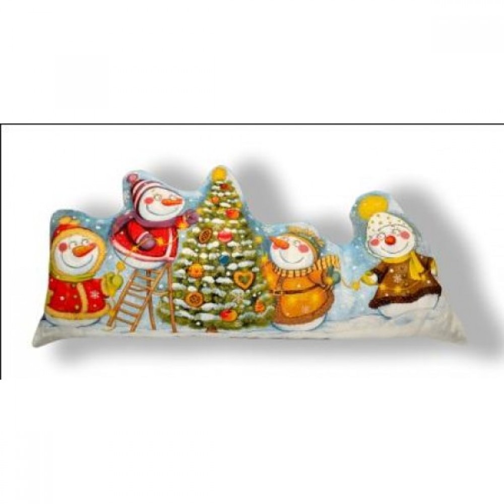 Гобеленовая подушка-игрушка "Снеговики у ёлки" (35х95)