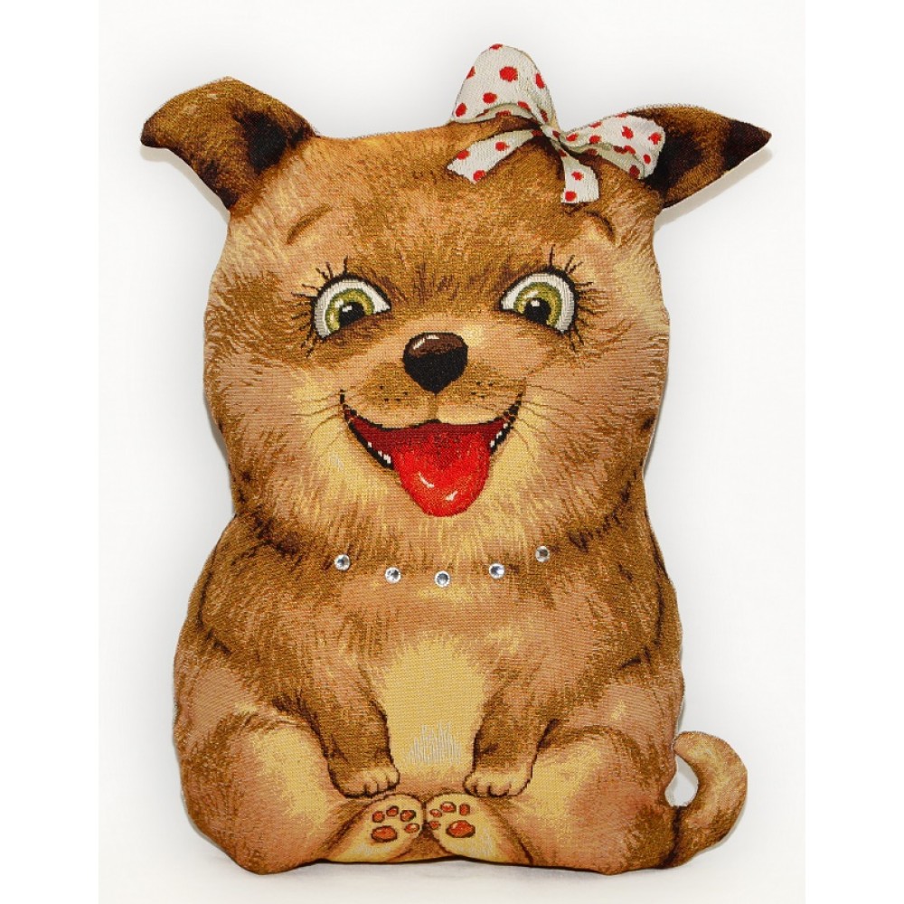 Гобеленовая подушка-игрушка из гобелена "Душечка белый бант" (40х52).
