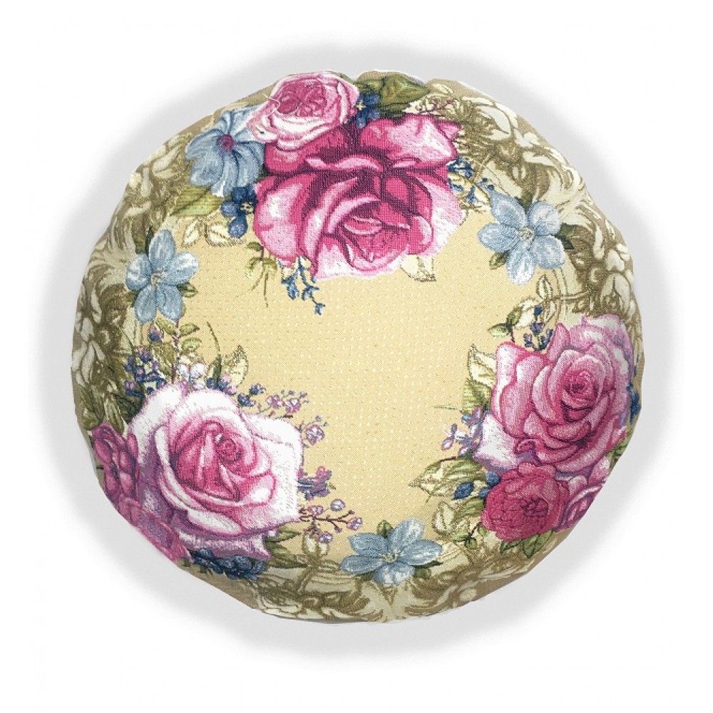 Гобеленовая подушка-игрушка из гобелена "Вальс цветов" (диаметр 46см).