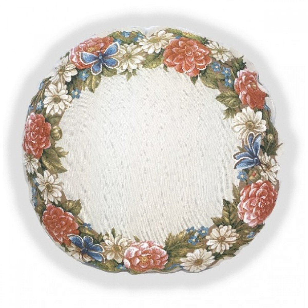 Гобеленовая подушка-игрушка из гобелена "Венок Нежность" (диаметр 46см).