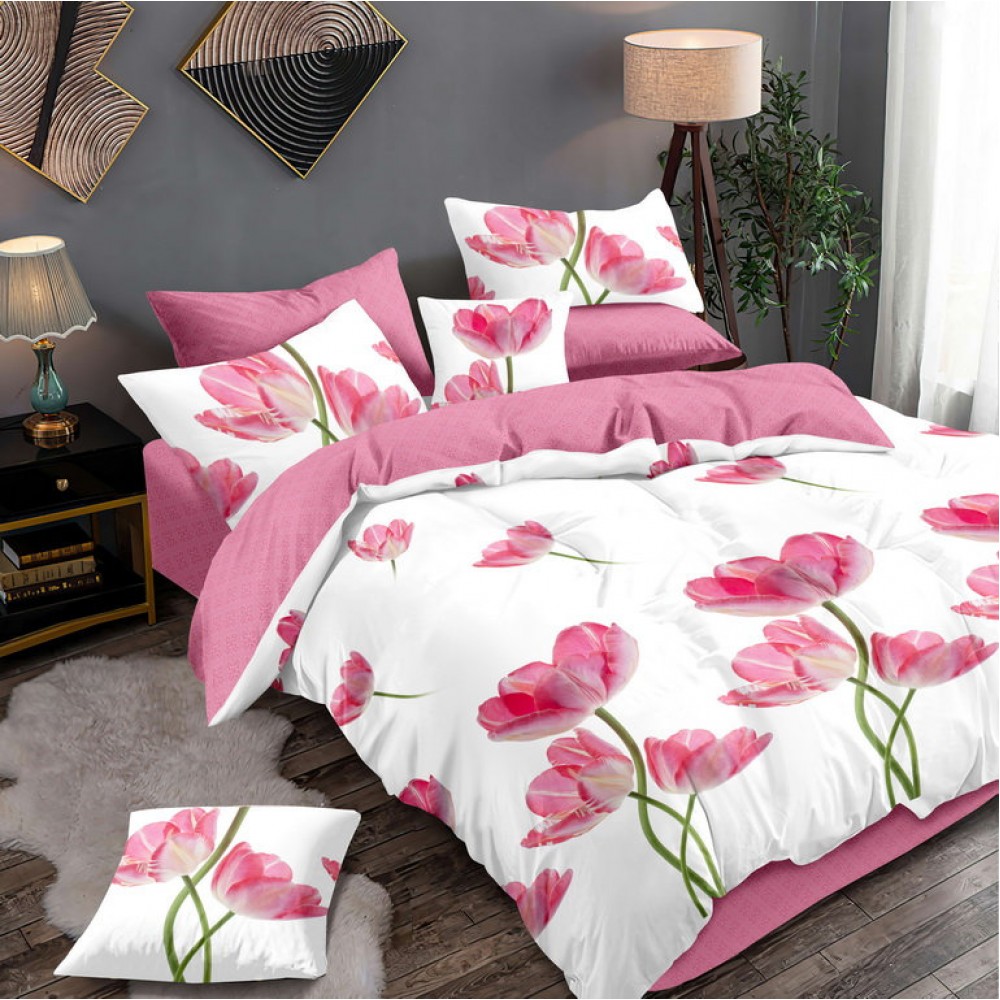 • Постельное белье Пинк Флауэр, поплин наволочки 70х70, Размер 2 сп с евро простыней
