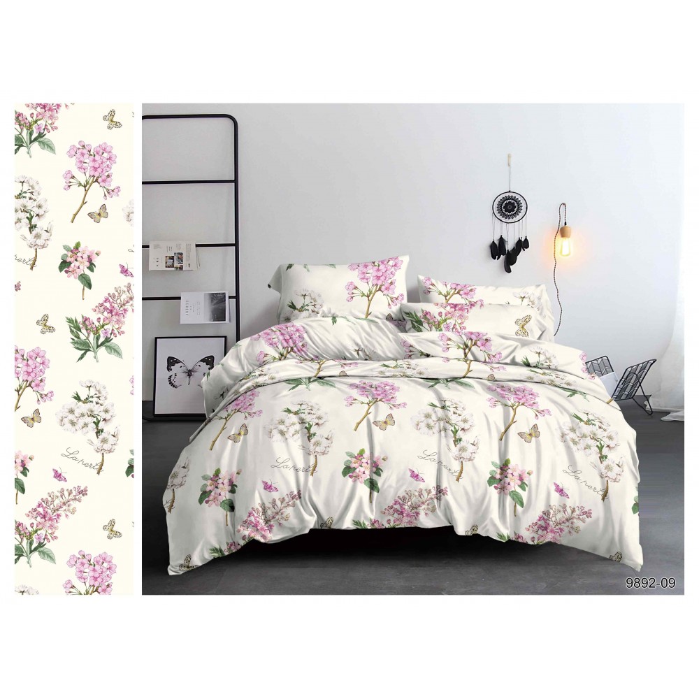 Постельное белье С цветами и бабочками полисатин, наволочки 70х70см, Размер 1,5 сп.