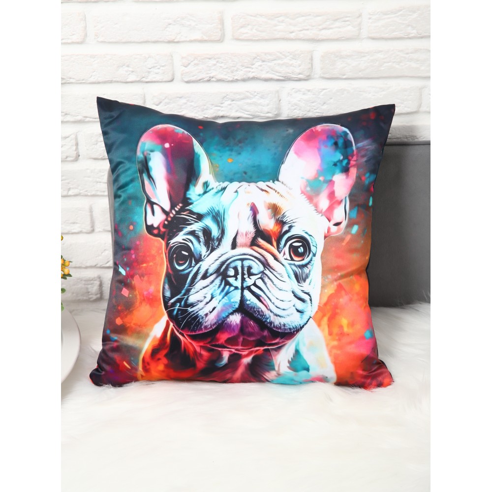 Декоративная интерьерная атласная наволочка "Бульдог" на потайной молнии. Размер 45х45 см.