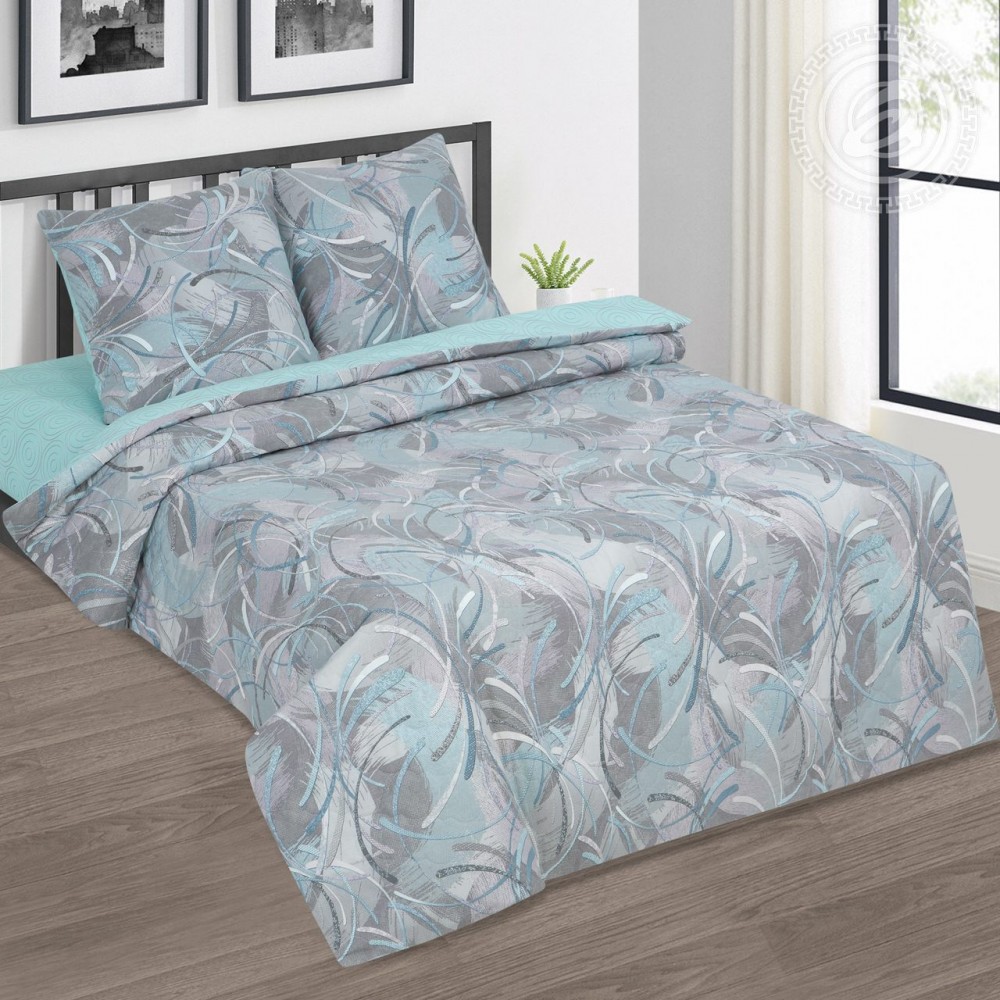 Постельное белье из поплина в серо-голубой комбинации выглядит изысканно, элегантно, утонченно. Композиция с воздушной и будто невесомой абстракцией – это прекрасная картина с нежными узорами, образованными будто взмахами кисти, чудесный танец весенних цветов.