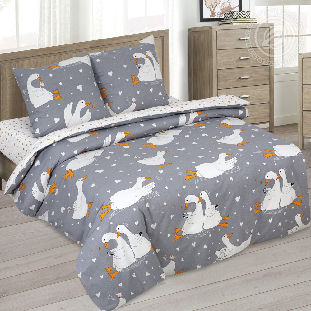 Постельное белье с гусями – тренд последних лет. Милые и забавные птички ассоциируются с чем-то очень добрым и домашним и вызывают умиление. На комплекте из поплина веселый рисунок с гусями в нежных оттенках. Здесь птички отдыхают на мягких подушках, читают, о чем-то мечтают и подглядывают друг другу в телефоны. Знакомо, правда? Постельное белье гусь обнимусь – это символ заботы и уюта, а еще отличный подарок на День влюбленных, день рождения, 8 марта и Новый год.