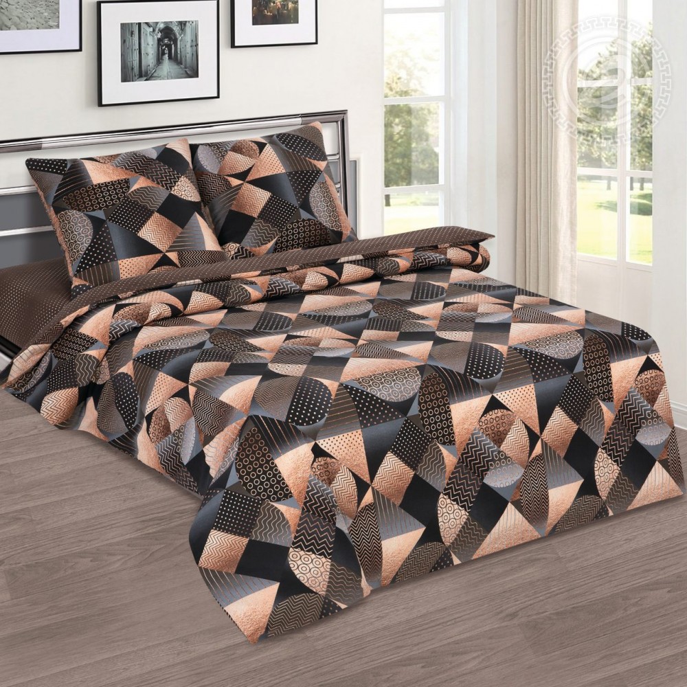Стильный принт «Неаполь» - чудесное напоминание о роскоши ар-деко с его смелой геометрией, необычными полутонами, глянцевым и ослепительным блеском. В палитре комплекта присутствуют золотые, шоколадные и темные оттенки, которые прекрасно сочетаются между собой. Композиция состоит из ромбов, линий, зигзагов и полукругов.