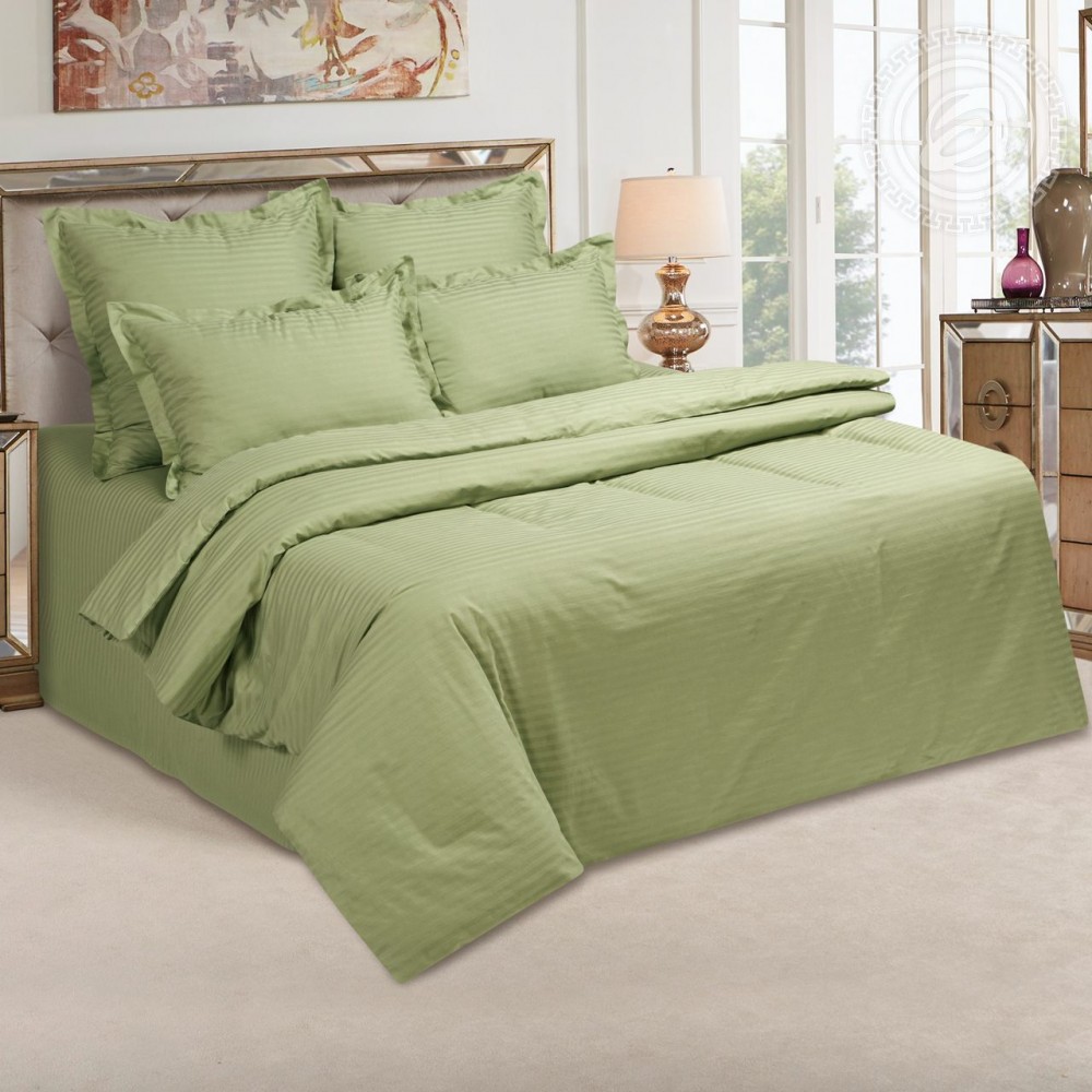 Излюбленный многими фисташковый цвет в сочетании с полосками представленный в сатине станет прекрасным украшением спальни. Комплект создаст уютную атмосферу и подчеркнет прекрасный вкус его обладателя.