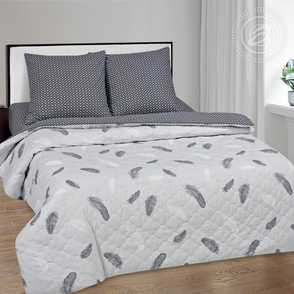«Феникс» - мегапопулярный дизайн выполнен в универсальной цветовой гамме с сочетанием темно-серых и светло-серых тонов. Композиция дополнена легкими и невесомыми перышками мифической птицы феникс, которые словно парят в воздухе. «Феникс» - идеальный выбор для создания благоприятной и комфортной атмосферы в спальне. Отличительная особенность комплекта зима-лето - это стеганый утепленный пододеяльник. Пододеяльник подшит с одной стороны изнутри тонким слоем синтепона. Утеплитель закрыт дополнительным слоем поплина, что придает изделию эстетичность и изящество. В итоге комплект универсален для использования зимой и летом. В холодные зимние дни утепленный пододеяльник со вставленным в него одеялом прекрасно согревает. Летом пододеяльник выполняет роль облегченного одеяла, даря комфорт и красоту!