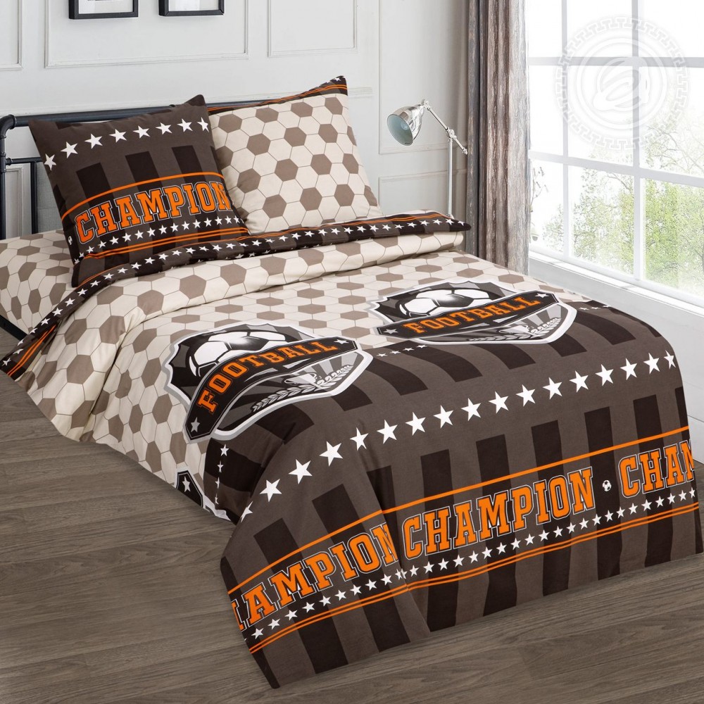 Серьезный взрослый рисунок для истинных болельщиков футбола подойдет как подрастающему поколению, так и вполне взрослому мужчине. Надписи «футбол» и «чемпион» настраивают на победу, а изображение мяча прослеживается по всей поверхности постельного белья. Прочность ткани поддерживает идею о том, что в новом дне будет много достижений. Однако тон простыни, наволочек и внутренней стороны пододеяльника специально выполнен в темном свете, ведь ночью ничего не должно помешать чемпиону восстановить потраченные силы. Производство: Россия, Иваново, компания Артдизайн, коллекция Артпостель.