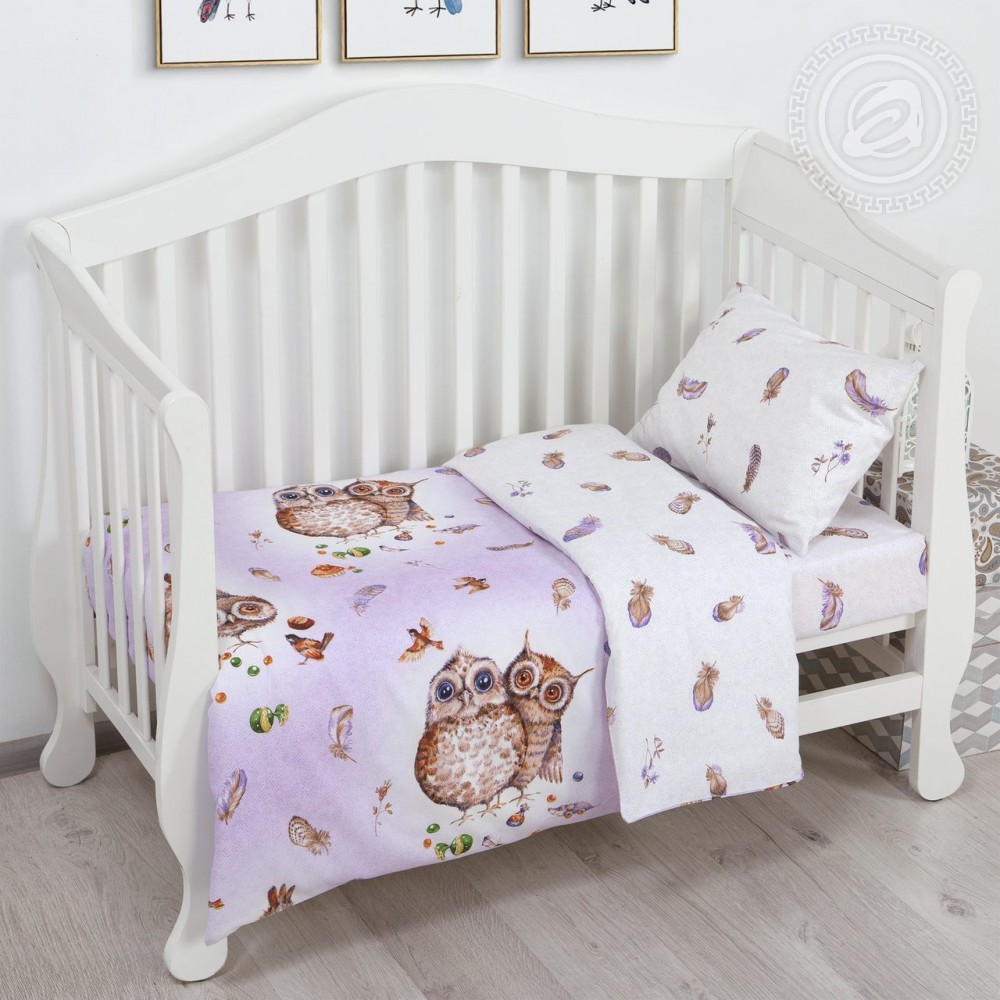 Принты с совами сейчас очень популярны. Рисунок с мудрыми пташками украсил комплект из поплина «Сладкий Я».